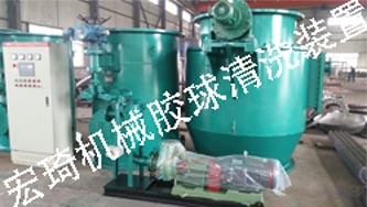 膠球清洗裝置還可以實現(xiàn)自動化運行,主要靠PLC模塊自動化控制,電動二次濾網(wǎng)在進水口配有差壓變送器。當電動二次濾網(wǎng)網(wǎng)面通流面積減少時,達到設(shè)計差壓值時,差壓變送器將信號傳送給PLC,PLC模塊指令啟動電動二次濾網(wǎng)傳動機構(gòu),同時打開電動排污閥進行排污。當差壓值恢復時,差壓變送器將信號傳送給PLC模塊,PLC模塊指令停止電動二次濾網(wǎng)旋轉(zhuǎn),關(guān)閉電動排污閥。PLC同時配有時間實施計劃,膠球清洗投用可設(shè)置二級時間保護,時間設(shè)計范圍可以設(shè)置10-999小時自動投用一次。投用時間可設(shè)置為15-30分鐘,投用時間設(shè)置:PLC指令打開裝球室前置電動球閥,同時將信號傳送給膠球輸送泵,啟動膠球輸送泵。同時打開循環(huán)水進水管道上電動投球閥,當正常運行后PLC指令打開裝球室出口電動球閥,循環(huán)水管道回水管道上裝有收球閥,PLC設(shè)置時間清洗為15-30分鐘后。PLC指令關(guān)閉裝球室的電動閥門,PLC再指令關(guān)閉電動投球閥門,再指令關(guān)閉收球電動閥門、其次PLC指令停止膠球泵。