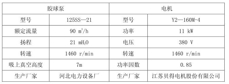 3.2膠球清洗裝置設(shè)備參數(shù)
