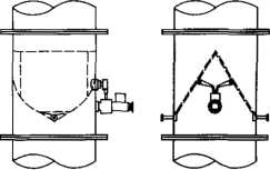 由于現(xiàn)場空間有限,不可能在收球網(wǎng)上方留出相當(dāng)?shù)闹惫芏,因此,在凝汽器出水彎管段中水平焊接一不銹鋼折流板,見圖3。該折流板位于彎管段中心線處,將循環(huán)水流一分為二,用以規(guī)整彎管內(nèi)循環(huán)水流,使循環(huán)水能夠均勻地流經(jīng)收球網(wǎng),以利于膠球收集。