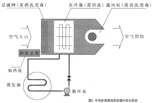 空氣調(diào)節(jié)系統(tǒng)是不容忽視的關(guān)鍵部位見圖245冷凝器系統(tǒng)的清洗范圍冷凝器系統(tǒng)的清洗范圍包括冷卻水系統(tǒng)冷凝器冷卻塔及相關(guān)水管道冷凍水系統(tǒng)蒸發(fā)器風(fēng)機盤管/表冷器水側(cè)及相關(guān)管道循環(huán)風(fēng)系統(tǒng)過濾器風(fēng)機盤管/表冷器風(fēng)側(cè)。
