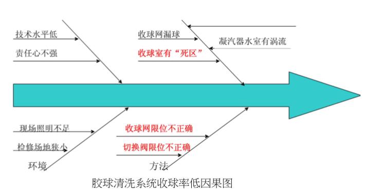 目標(biāo)值:使膠球清洗裝置收球率95%。#3機(jī)膠球清洗裝置系統(tǒng)收球率太低,不能在機(jī)組運(yùn)行時清潔凝汽器,而且大量膠球隨循環(huán)水進(jìn)入了冷卻塔,使冷卻塔濾網(wǎng)堵塞嚴(yán)重,影響了循環(huán)水流量,使機(jī)組的安全運(yùn)行受到了極大的威脅,因此,對膠球清洗裝置系統(tǒng)改進(jìn),提高收球率是必耍的。
